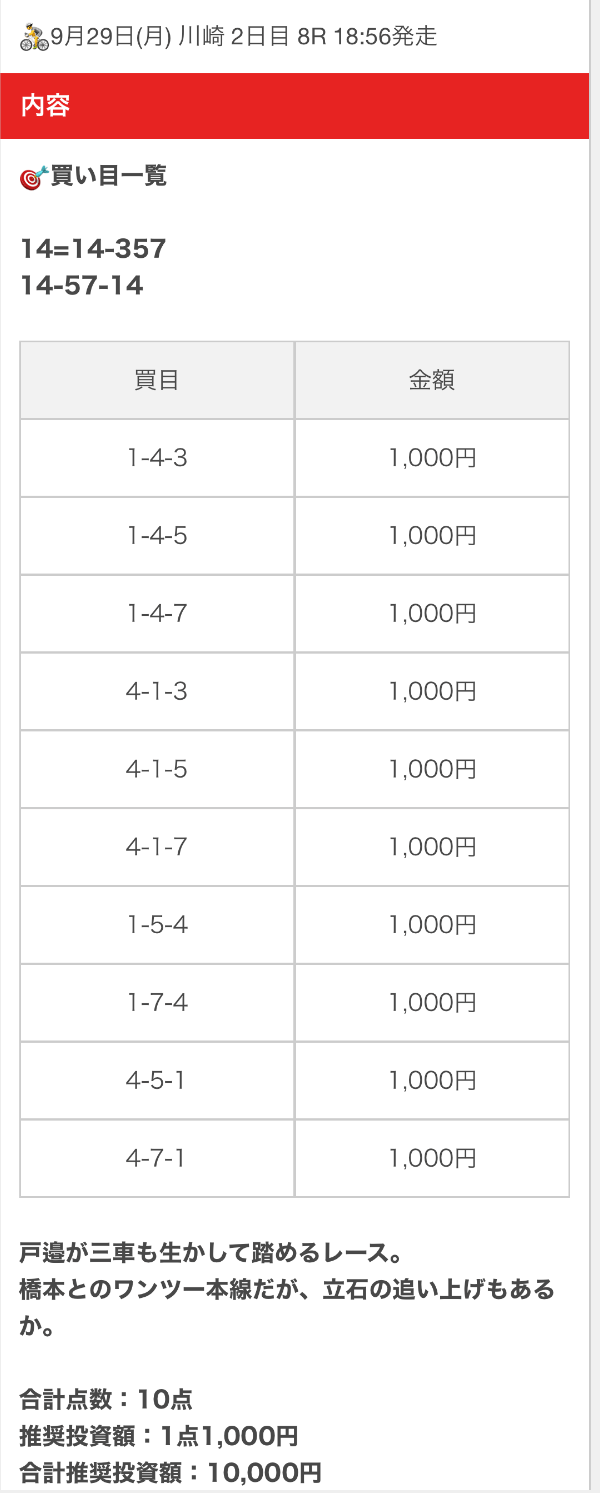 - 2025/09/29的中無料予想で22,100円獲得
