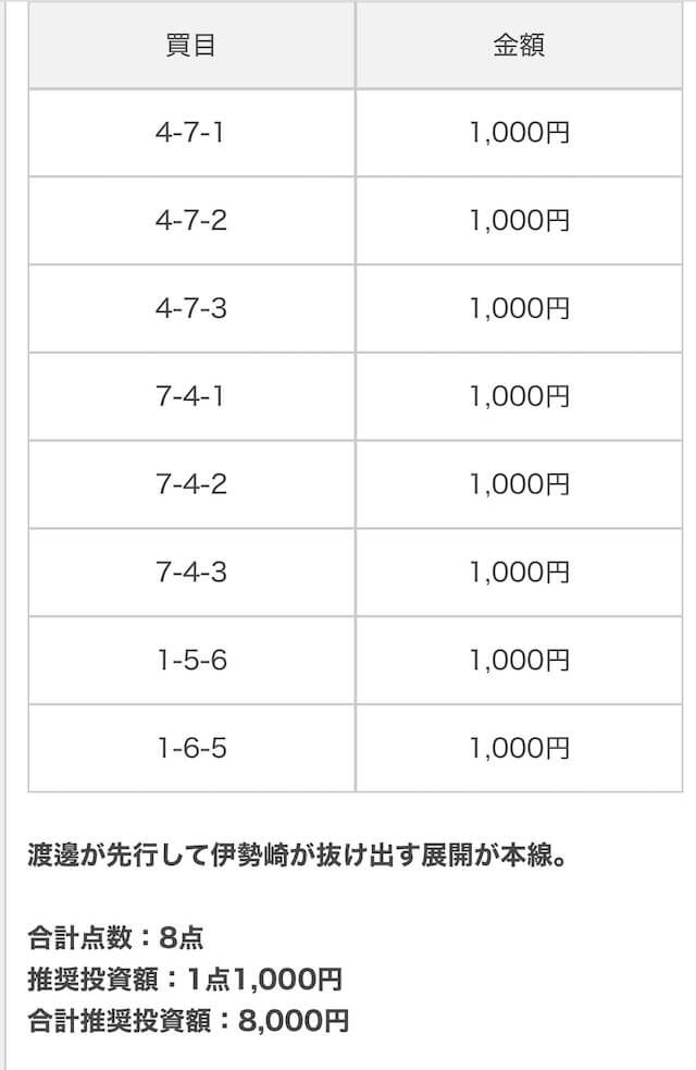 概要を確認したところで、軍資金を用意して、実際に公開された買い目に丸乗りしていきます。