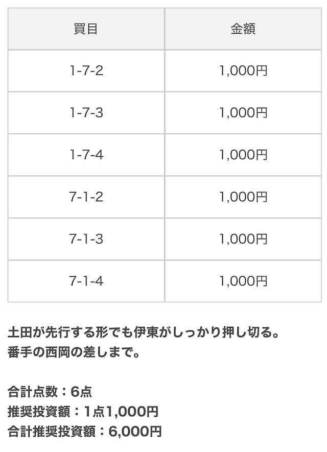 無料予想で好成績を残したので、続けて有料予想も使ってみましょう。