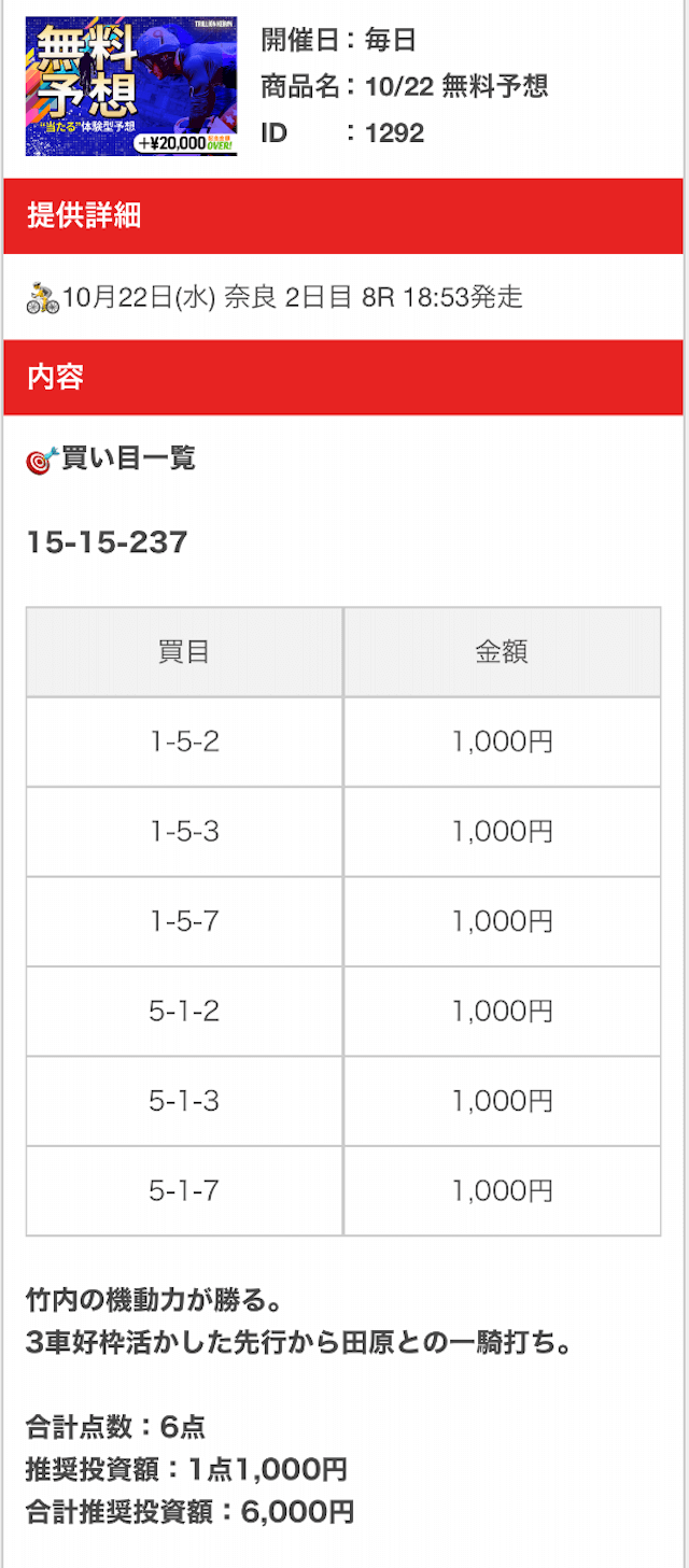 - 2025/10/22的中無料予想で22,700円獲得