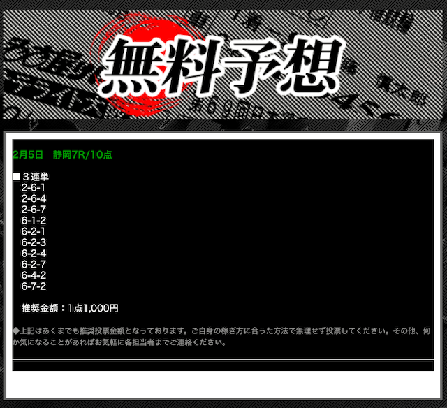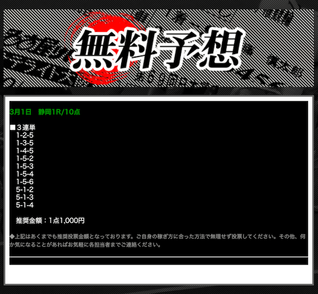 予想サイトの中では頭一つ抜けて当たる。絶対裏街道が一番強い。