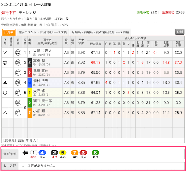 そのため、1番車の競走得点が上位3名に入る場合は、買い目に入れておいてください。
