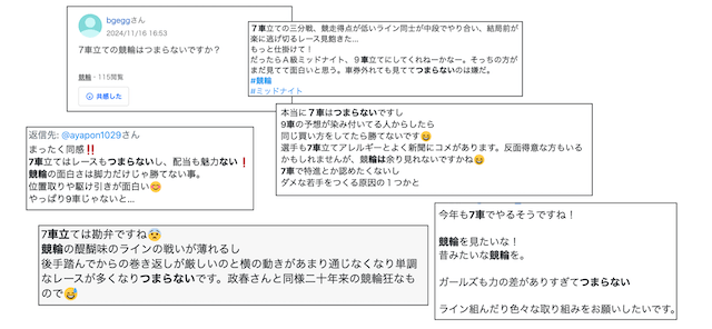 と同時に、全てが9車立ての頃から競輪を見ている方からは、展開が単調でつまらないという声も。