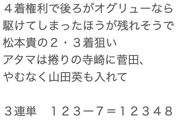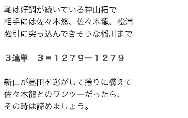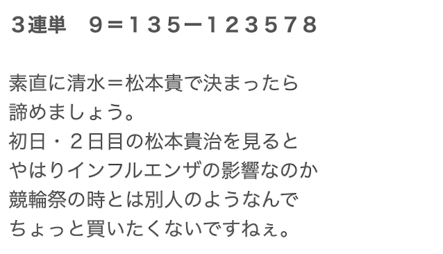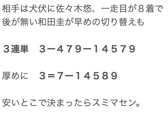 特筆すべきは、競輪歴の長さが伺える知識の豊富さで、選手のコメント・直近の走り方などから細かくレース展開や結果を分析しています。