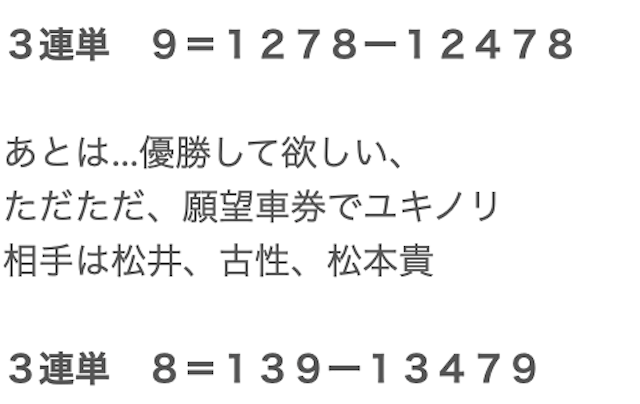 | 12/6佐世保10R | -3,000円 | 3,000円 | 0円 | 5-8-9 |