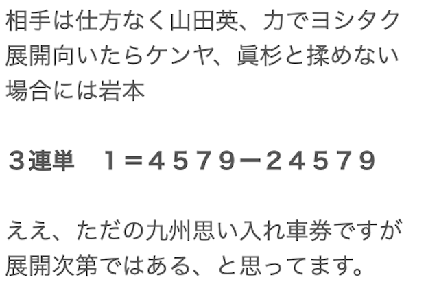 果たしてふぬ競の予想は当たるのか、実際に公開された買い目に丸乗りして検証してみました。